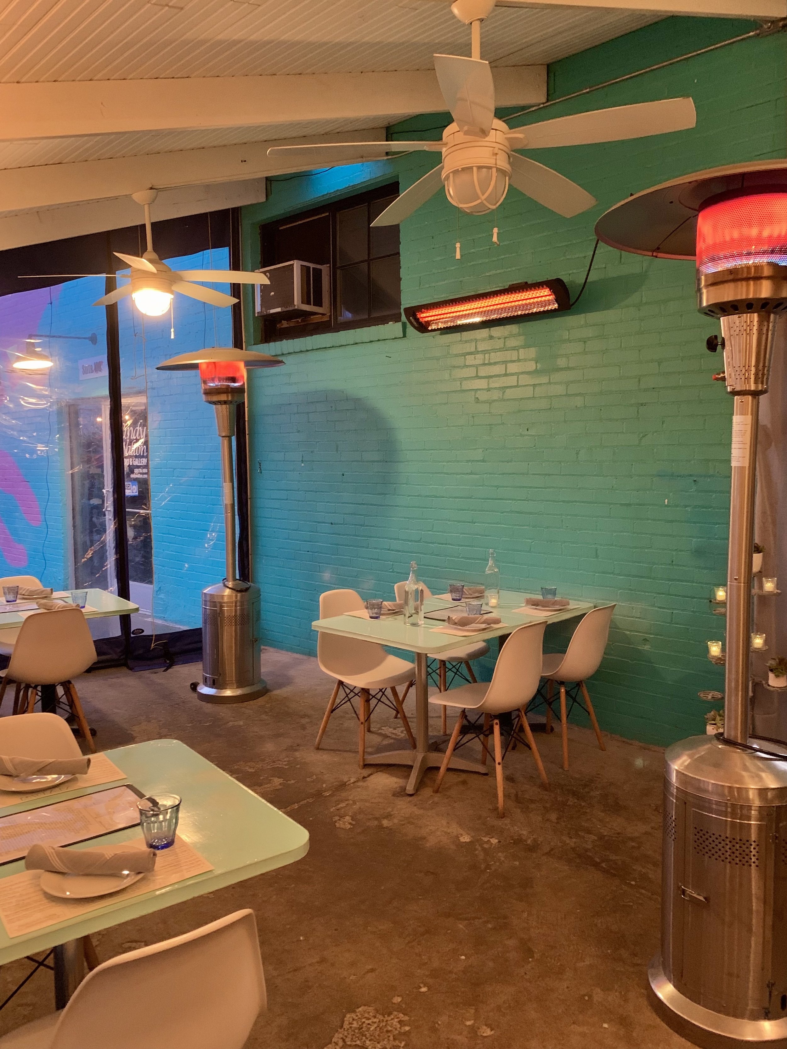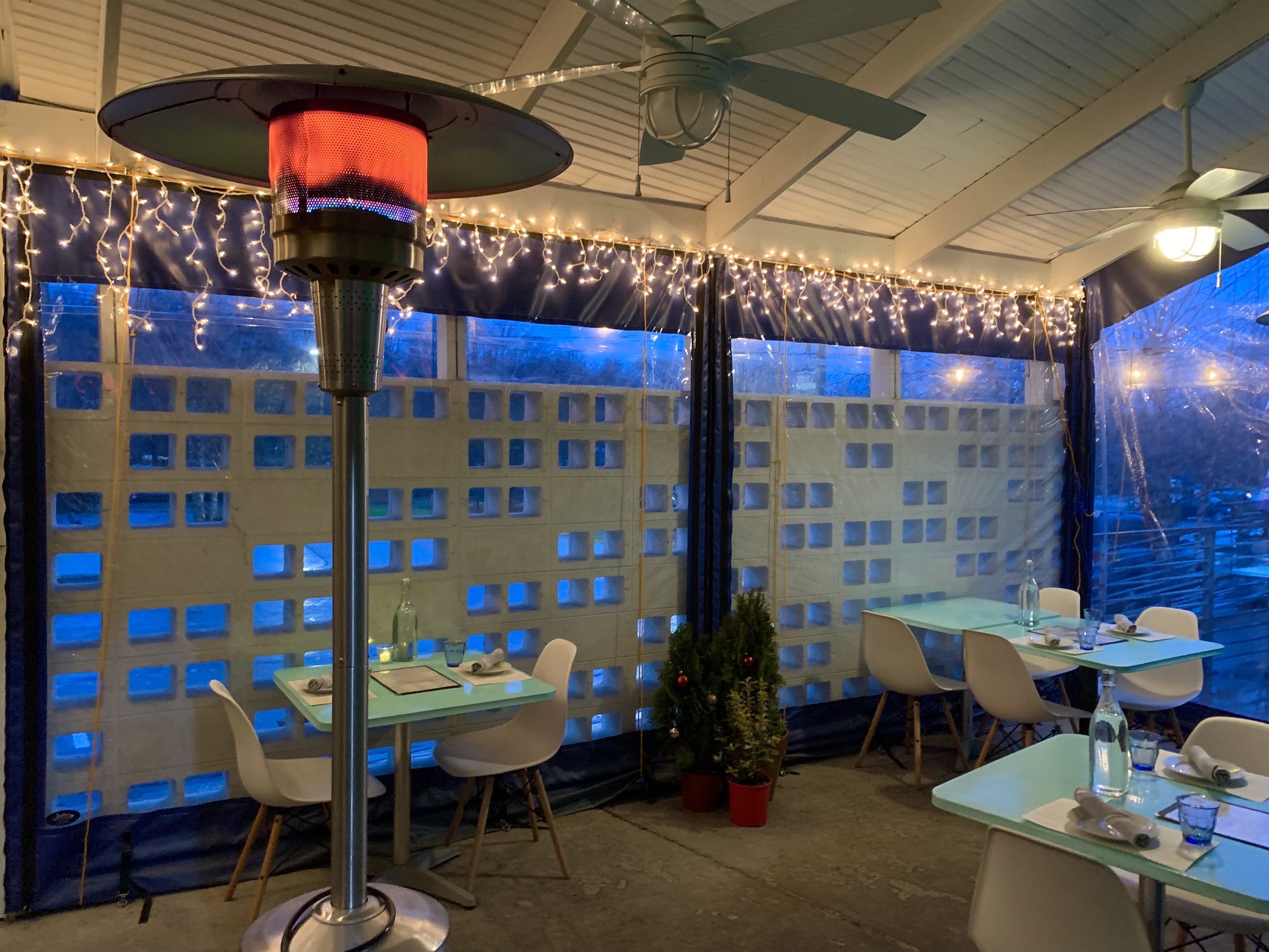 Our restaurant is equipped with an ionizing filtration system in the HVAC that kills 98% of pathogens. We have outdoor seating on the patio for those who don’t feel comfy inside just yet. The patio offers an open air dining experience with coverage in case of rain, fans for hotter days, and heaters for chilly ones. Well behaved dogs are welcome to join!
